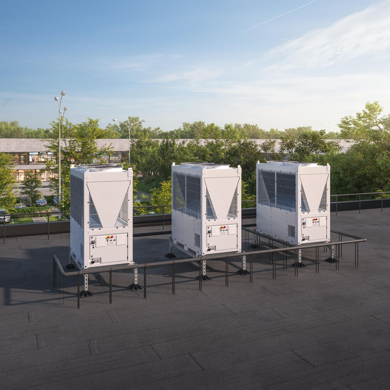 Jedinice su serijski opremljene scroll kompresorima koje pokreću inverteri i EC* ventilatorima bez četkica, čime se omogućava kontinuirana prilagodba kapaciteta u skladu sa stvarnim potrebama sustava. U kombinaciji s modularnom arhitekturom, ovim se pristupom osigurava posebno učinkovit rad u uvjetima djelomičnog opterećenja, koji su tipični u modernim zgradama i brojnim industrijskim postupcima. Kontinuiranom modulacijom smanjuju se ciklusi uključivanja i isključivanja, čime se doprinosi boljoj sezonskoj učinkovitosti i povećanoj operativnoj stabilnosti tijekom cijele godine.