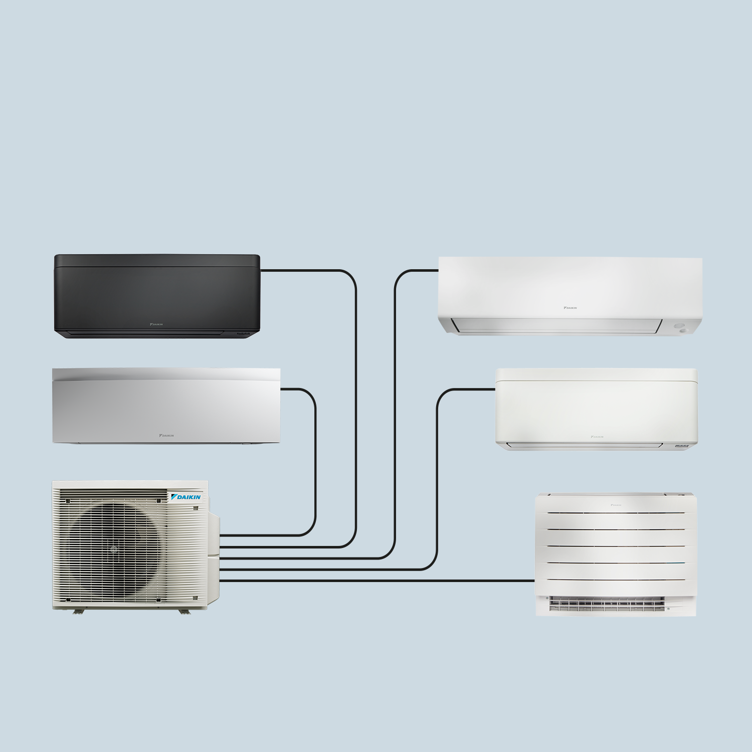 Zagrij i ohladi više prostorija povezivanjem jedne vanjske jedinice s do pet unutarnjih jedinica