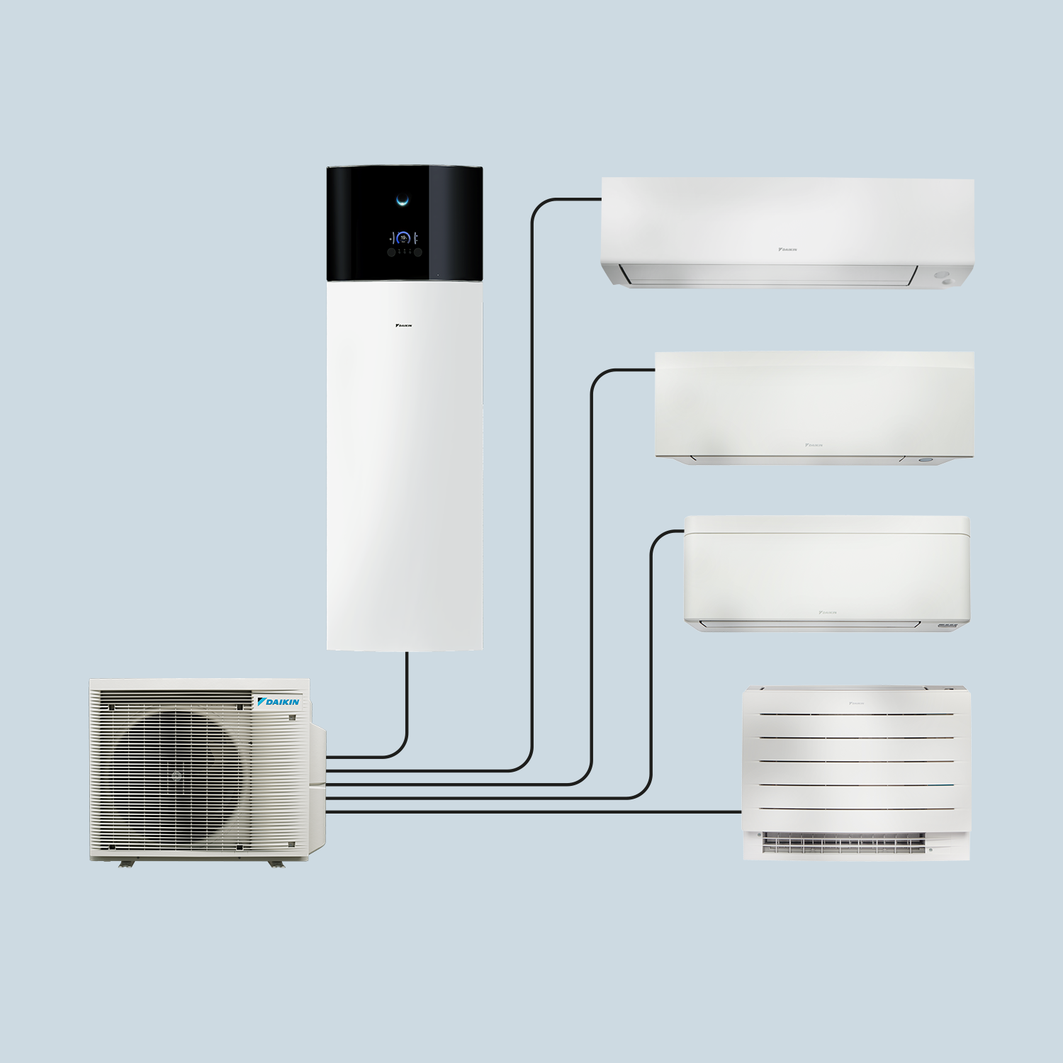 Zagrij i ohladi svoj dom i proizvodi toplu vodu povezivanjem jedne vanjske jedinice s do četiri unutarnje jedinice i spremnikom potrošne tople vode